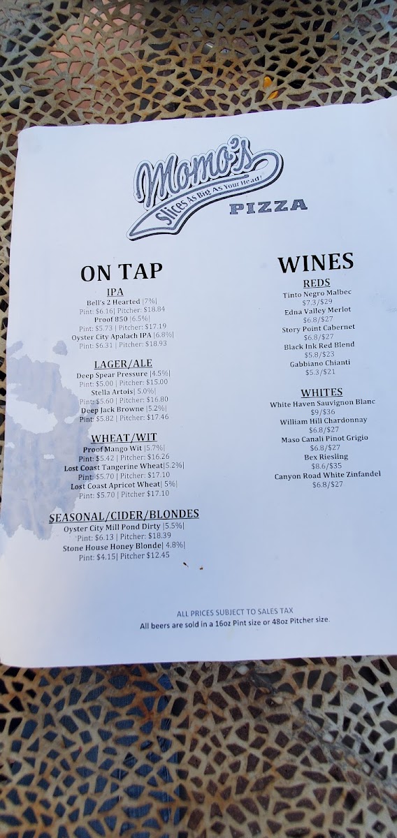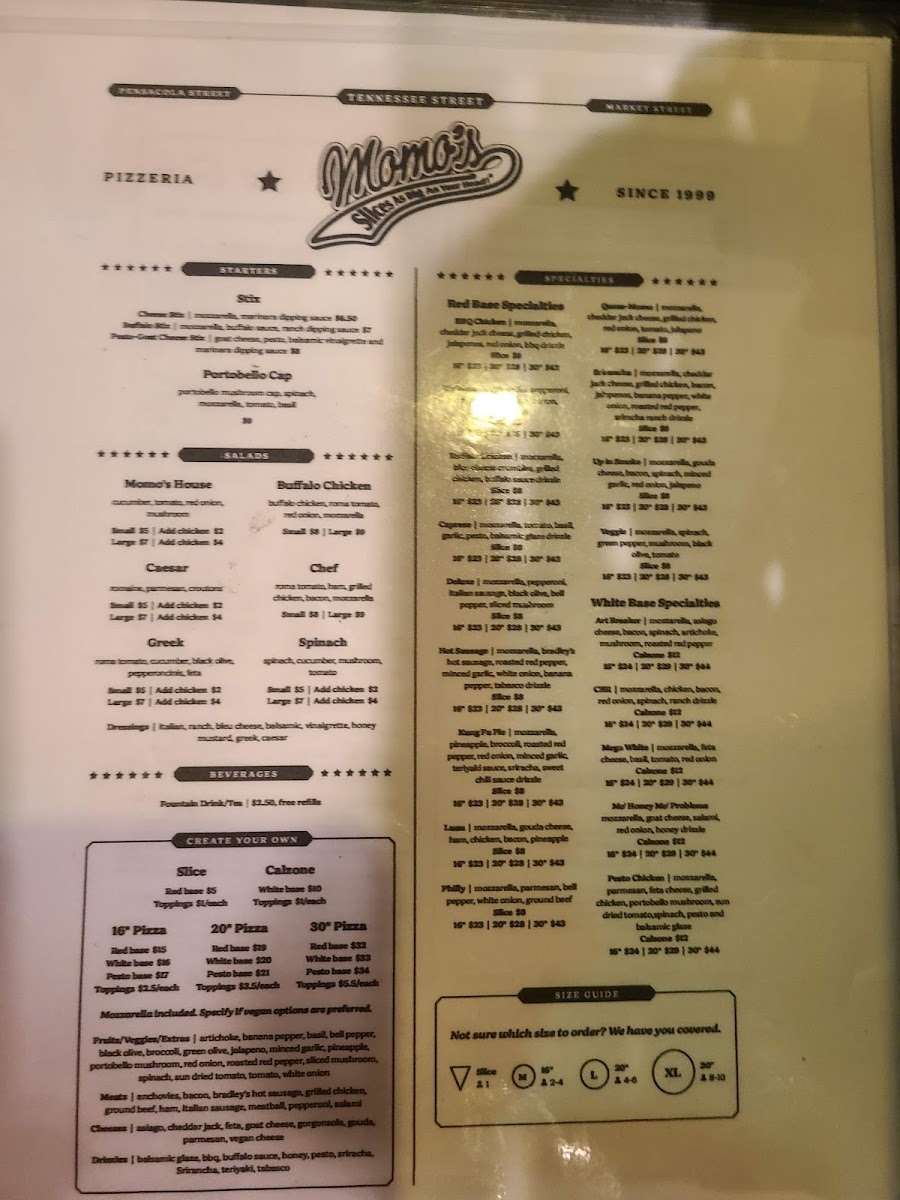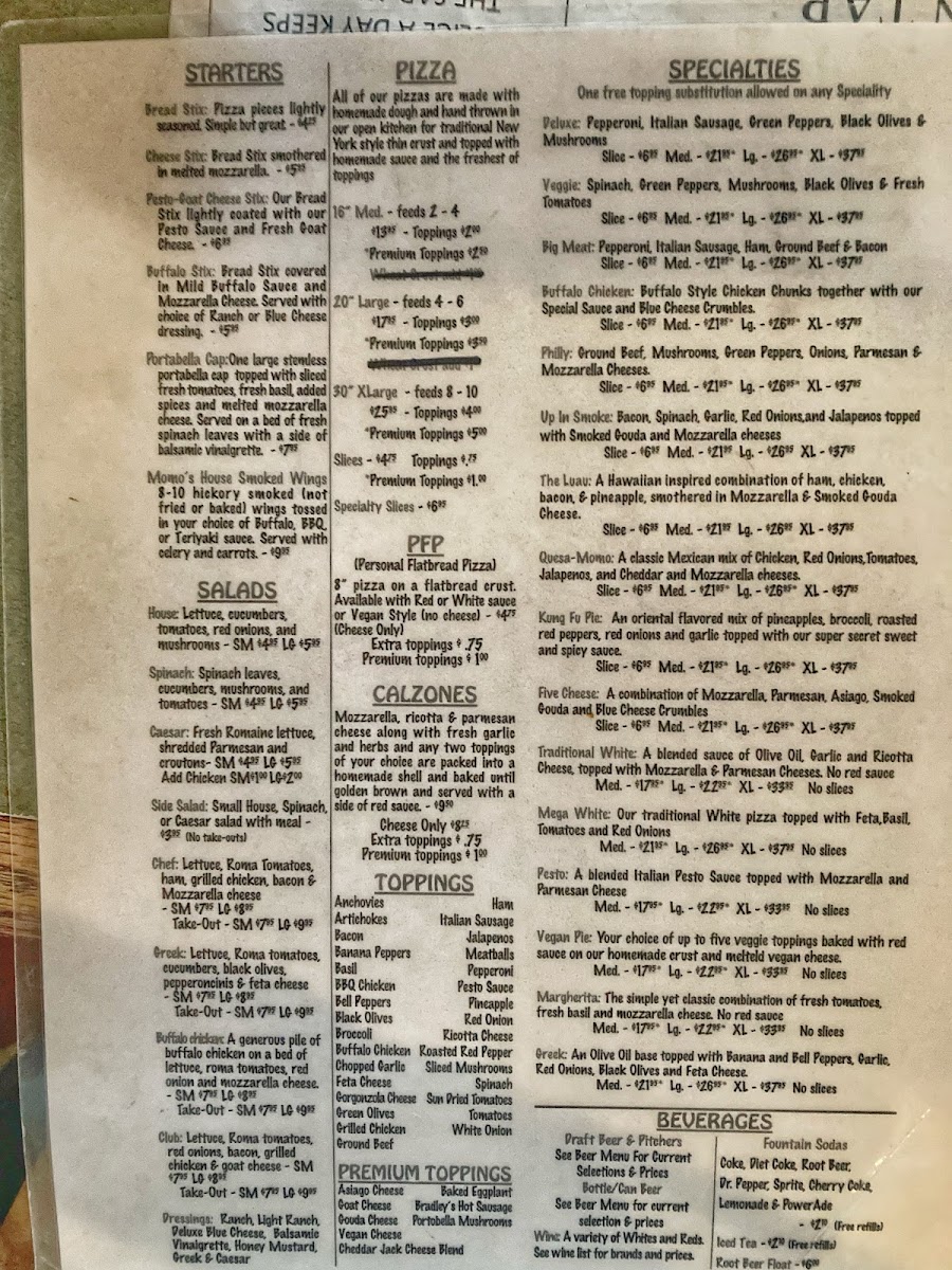 Momo's Pizza - Market Street Menu