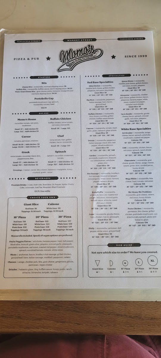 The menu at Momo's Pizza - Market Street offers a welcoming mix of hearty, casual dining options with a focus on satisfying pizzas and sharing-friendly dishes. Whether you’re stopping by for a quick slice or settling in for a relaxed meal, the choices range from classic favorites to inventive specialty pies that invite you to savor every bite.